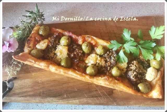 Estela nos ha traído estas riquísimas Tostas crujientes de aceitunas, tomates y queso de cabra, son tan apetecibles que se comen con la vista, las podéis ver en su blog Mi dornillo, la cocina de Estela.